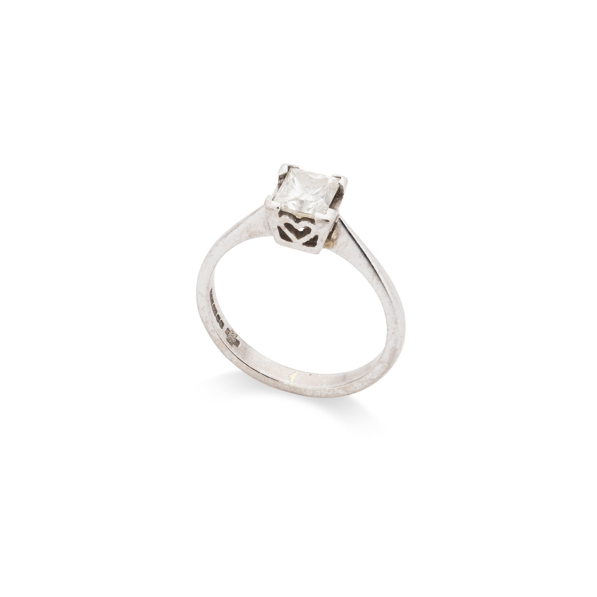Claw-set with a princess-cut diamond, weighing approximately 0.75cts, modelled in 18ct gold