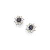 Each claw-set with an oval-cut sapphire, in a border of eight round brilliant-cut diamonds, post and butterfly fittings, unmarked
