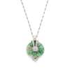 The circular pierced and carved jade panel with applied round-cut diamond detail, to a belcher link chain, unmarked