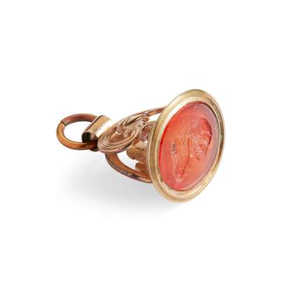 The carnelian matrix depicting a gentleman in profile, acorn detail to mount, unmarked; together with another small 17th century seal (2)