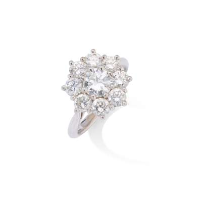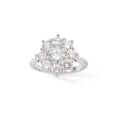 Claw-set with nine round brilliant-cut diamonds, unmarked