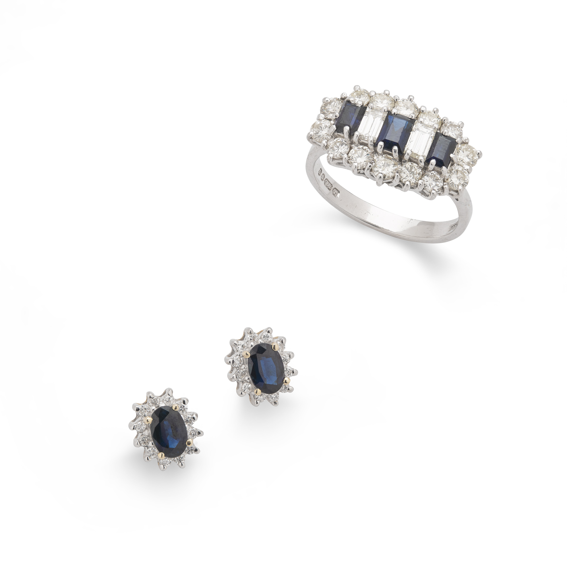 A sapphire and diamond dress ring and earrings
