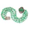 Composed of three rows of polished jadeite jade beads, the stylised foliate bracelet set with cabochon jades and pink tourmalines, unmarked