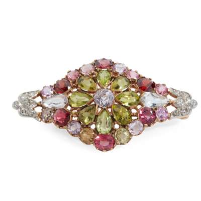 Set with vari-cut tourmalines, peridots and garnets, round-cut diamond detail, unmarked