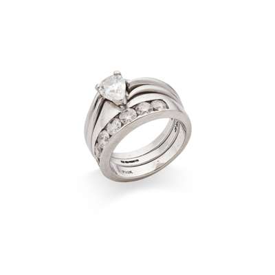 Including a platinum mounted pear-shaped single-stone diamond ring, UK hallmarks; a round brilliant-cut diamond fitted half-eternity ring, stamped 750K, and a plain fitted platinum wedding band, UK hallmark (3)