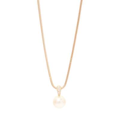 Set with a golden South Sea pearl, the bale pavé-set with small round brilliant-cut diamonds, to a snake-link chain, with French control marks