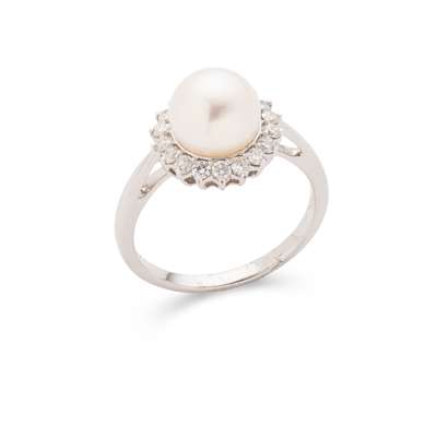A cultured pearl and diamond ring