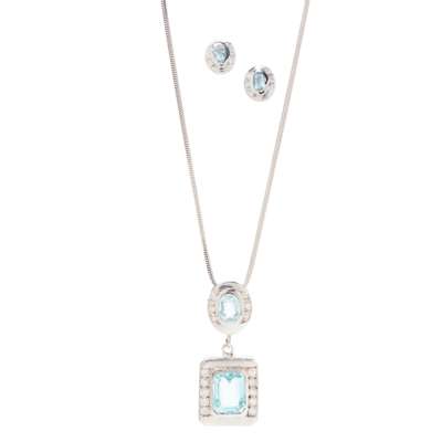 An aquamarine and diamond pendant and earrings