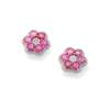 Each modelled as a flower-head, claw-set with round brilliant-cut diamonds and rubies, post and butterfly fittings, stamped Au750