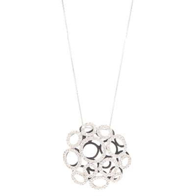 composed of a cluster of round brilliant-cut diamond circles, stamped 750; to an 18ct gold trace-link chain