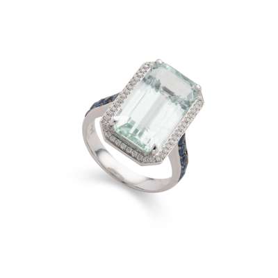 An aquamarine, sapphire and diamond cocktail ring