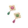A pair of carved emerald, pink tourmaline and diamond pendent earrings