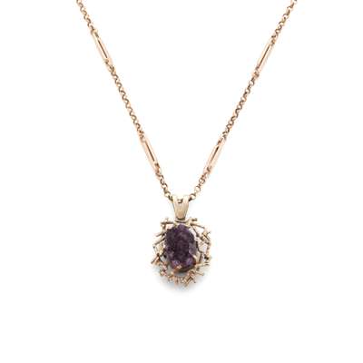 A 1970s 9ct gold amethyst geode pendant necklace