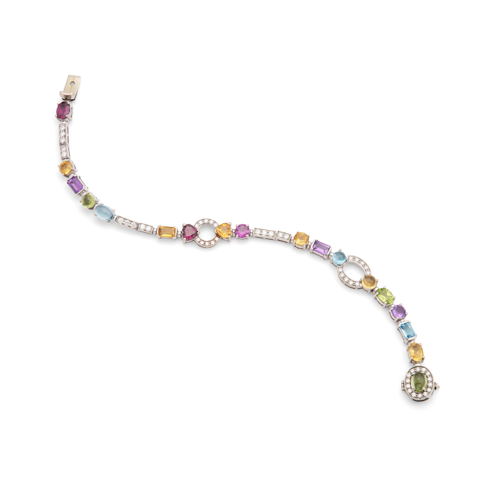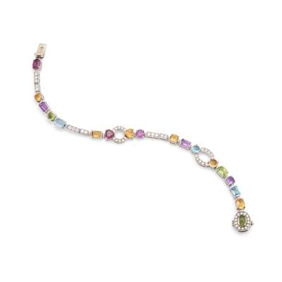 Each link set with vari-cut citrines, topaz, amethysts, garnets, peridots and round brilliant-cut diamonds, UK hallmarks