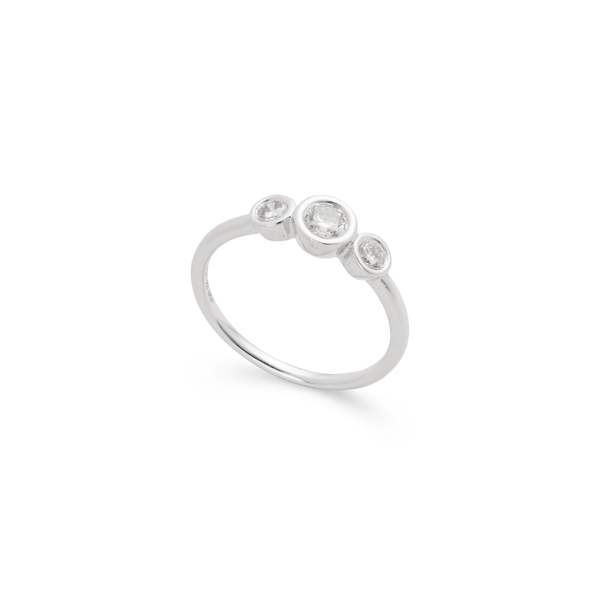 Collet-set with three graduated round brilliant-cut diamonds, plain band, stamped 18k 750