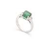 Claw-set with an octagonal step-cut emerald, each shoulder set with a tapered princess-cut diamond, plain band, stamped Pt950
