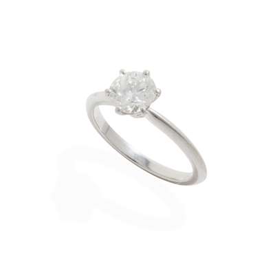Claw-set with a round brilliant-cut diamond, weighing approximately 1.10cts, plain band, unmarked