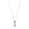 Collet-set with three rectangular step-cut rubies, two in a channel-set border of step-cut diamonds, trace-link chain, stamped pt750