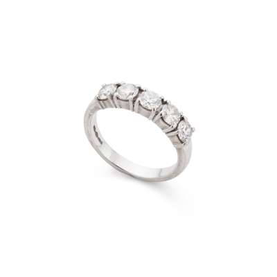 Claw-set with five round brilliant-cut diamonds, plain band, UK hallmark