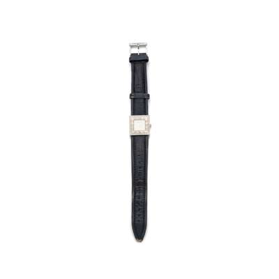 The square dial with polished dagger hands, the 18 carat white gold bezel featuring Roman numerals, within a border of brilliant-cut diamonds, to concealed lugs and a black crocodile strap, diamonds approx. 0.65 carat total, case, strap and clasp all signed Tiffany & Co., numbered, European convention mark, Swiss assay mark, case width 2.1cm, maximum strap length 19.0cm