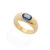 Gypsy-set with an oval-cut sapphire, plain band, stamped 750
