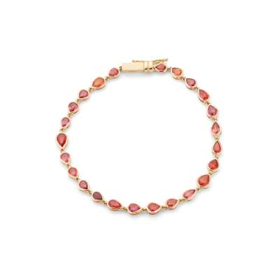 Collet-set with pear-shaped orange sapphires links, stamped Au750