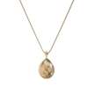 Collet-set with a pear-shaped cabochon moss agate, suspended from a 9ct gold snake-link chain, UK hallmark