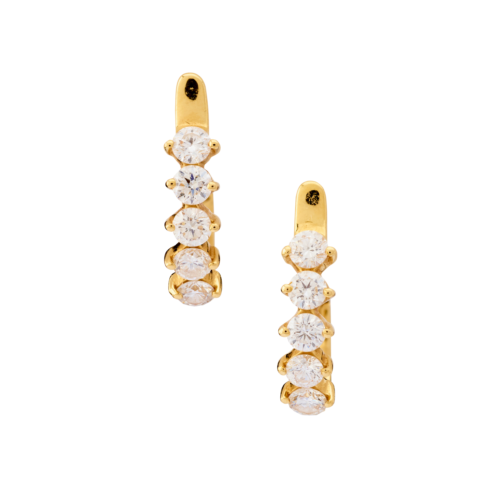 Each claw-set with a row of round brilliant-cut diamonds, post and clip fittings, stamped Au750