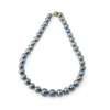 Composed of a single strand of black Tahitian pearls, ball clasp with engraved detail, stamped 375