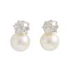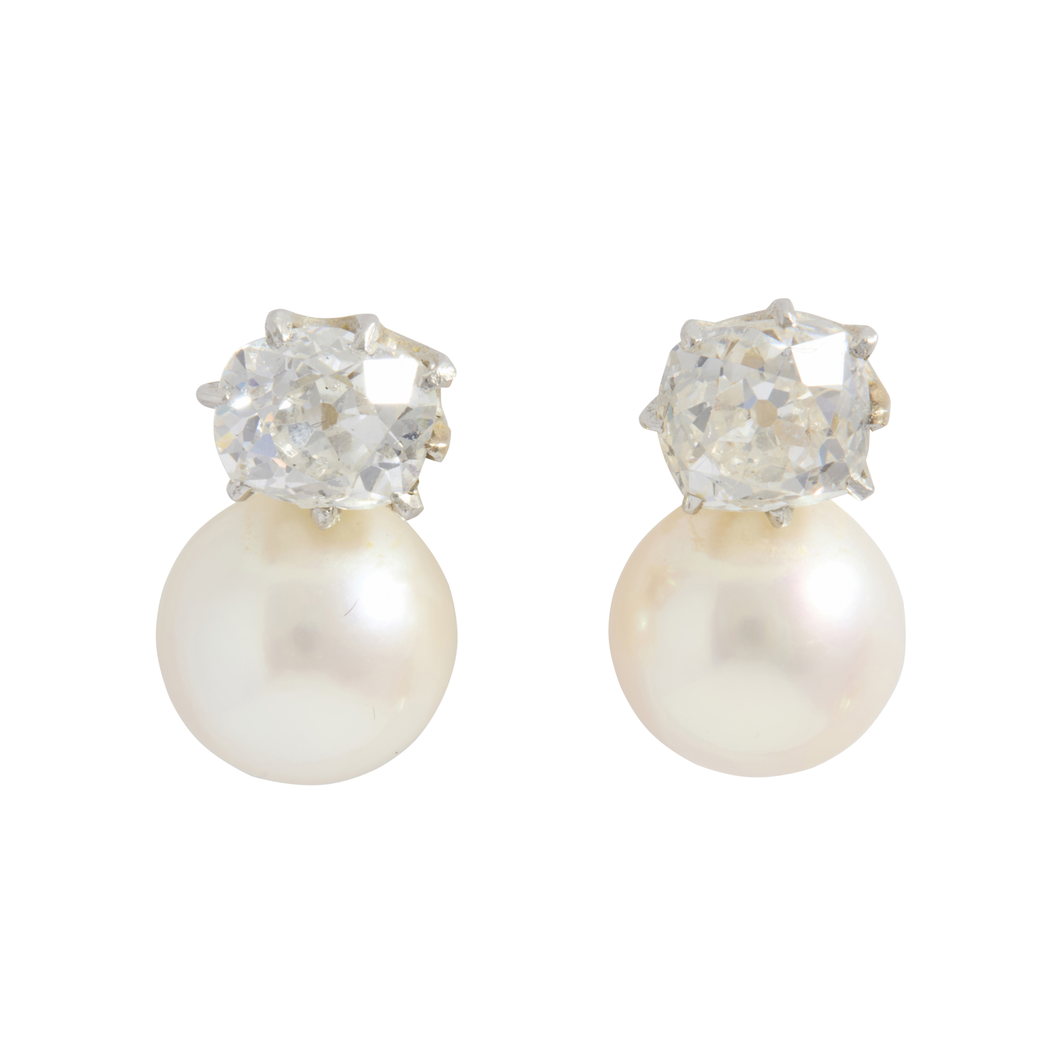 Each claw-set with a cushion-cut diamond above a cultured pearl, post and butterfly fittings, unmarked