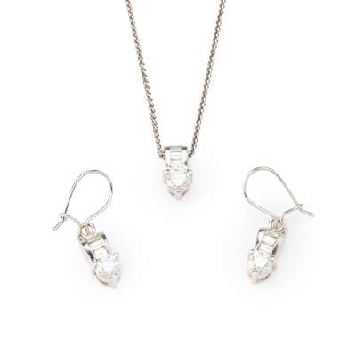 A diamond pendant and matching earrings