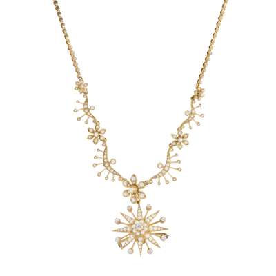 A late Victorian seed pearl and diamond necklace, circa 1880