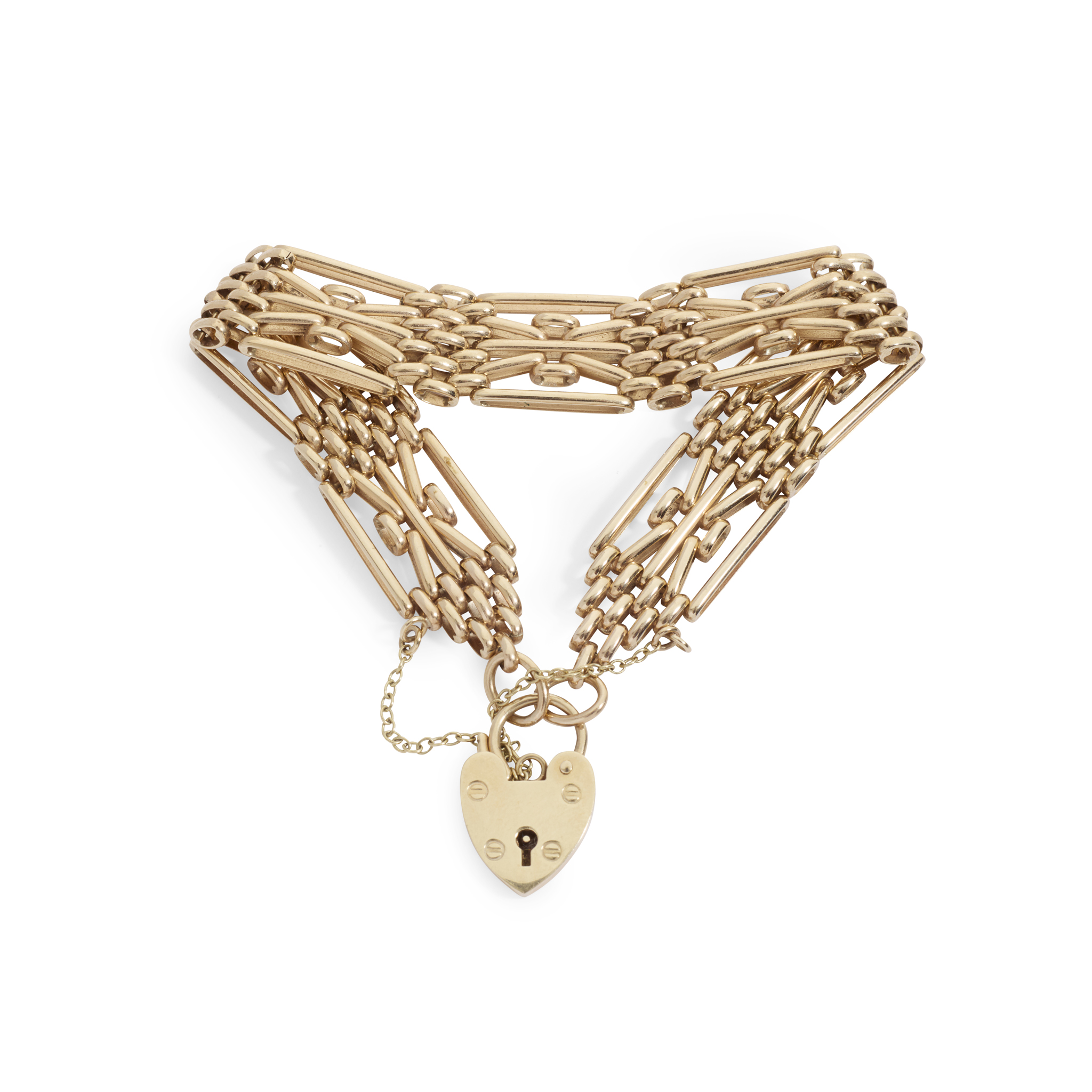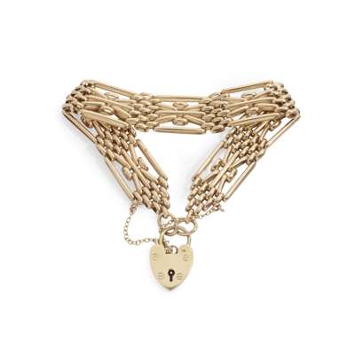 Of traditional design with a heart-shaped padlock clasp, import hallmark