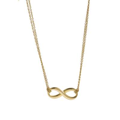 The infinity symbol to a trace-link chain, signed Tiffany & Co Au750, with original outer box and black suede pochette