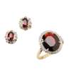 A garnet and diamond ring and matching earrings
