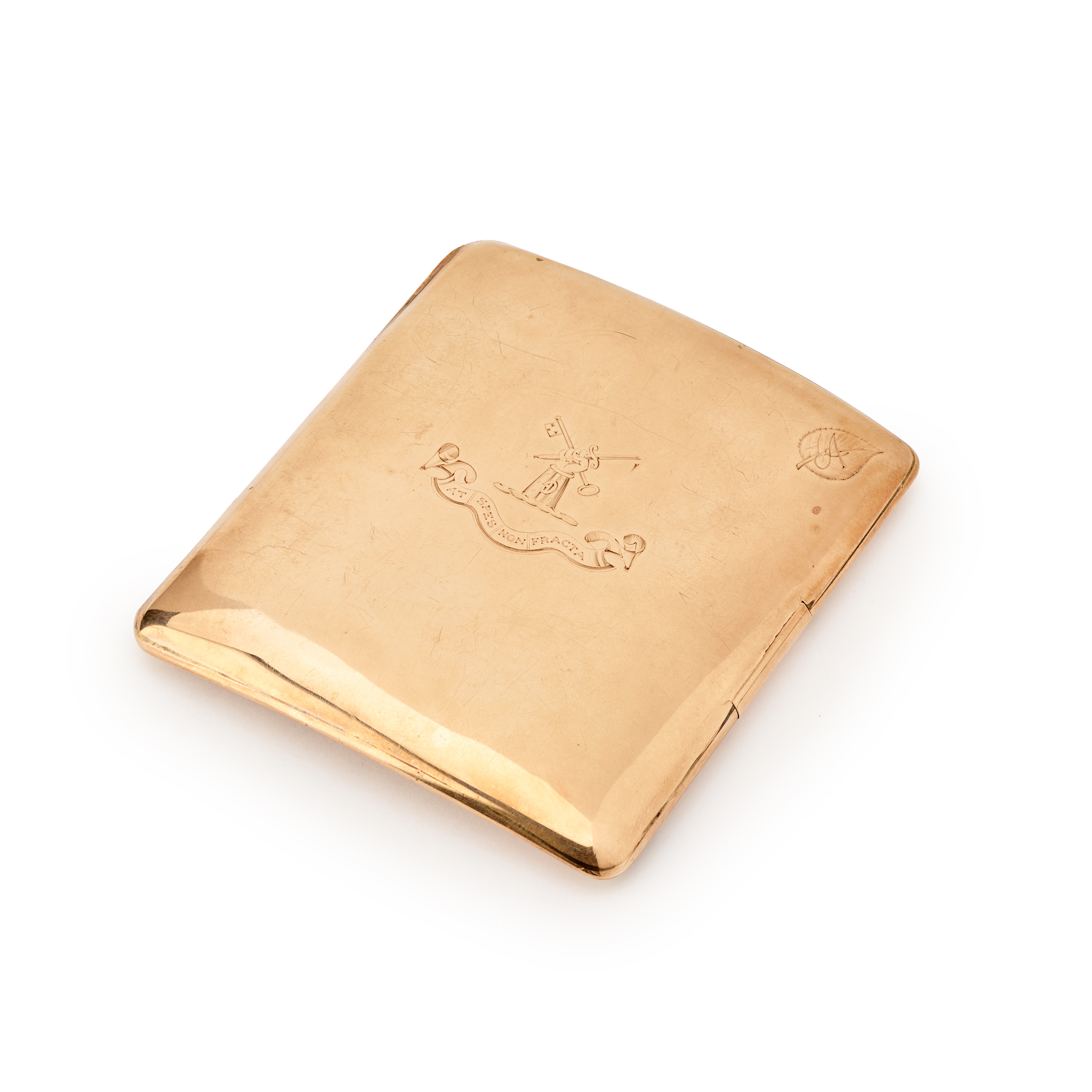 Of rectangular outline, engraved crest and motto to exterior, engraved H.C.KINNARD / ORLEANS CLUB 1907, UK hallmark