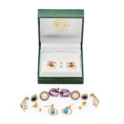 A collection of gem set earrings