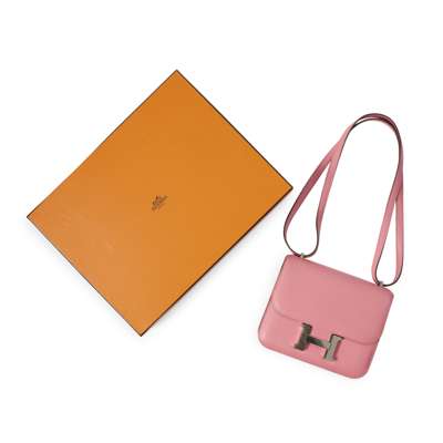 Hermès: A Rose Ete Evercolour and Terre Battue Swift Leather Mini Constance 18 Bag, 2020