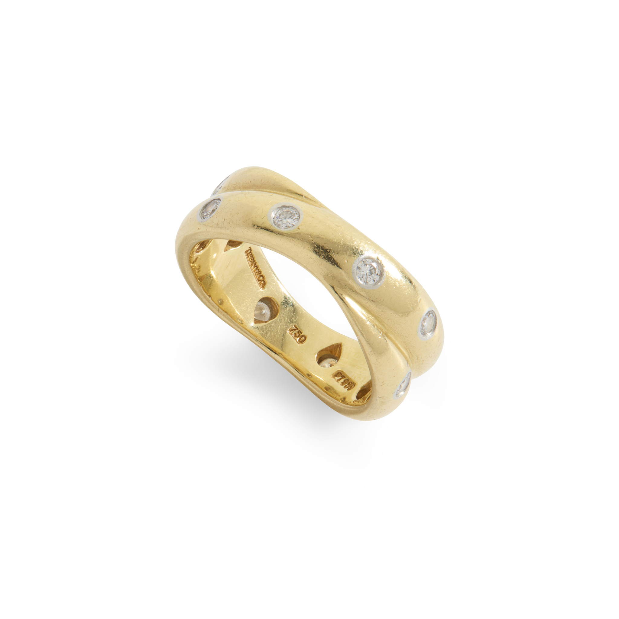 The ribbed band gypsy-set with round brilliant-cut diamonds, singed Tiffany & Co, UK hallmark