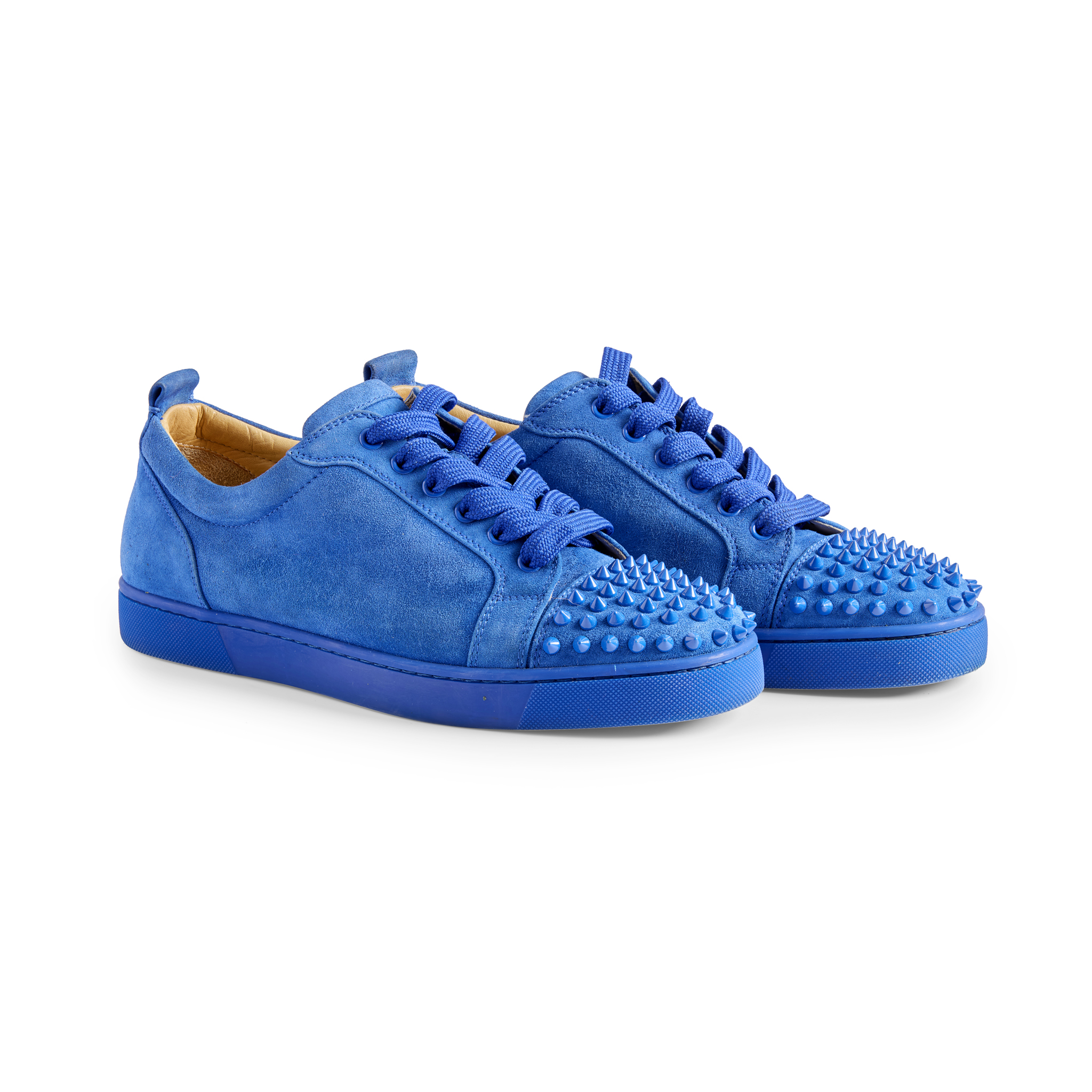Christian Louboutin: Louis Junior Spikes Suede Trainers Electric Blue