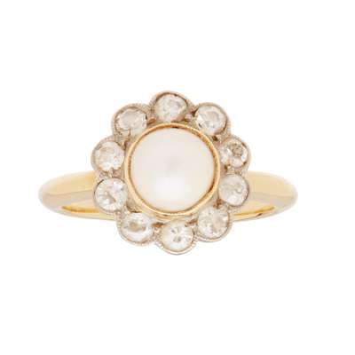 A pearl and diamond cluster ring
