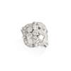 Claw-set with nine round brilliant-cut diamonds, in a shaped border of eight-cut diamonds, split shoulders, ribbed detail to band, indistinct marks