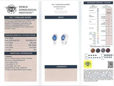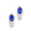 Each collet-set with an oval-cut Tanzanite, weighing approximately 2.90cts each, above six small round brilliant-cut diamonds, post and clip fittings, stamped 18k