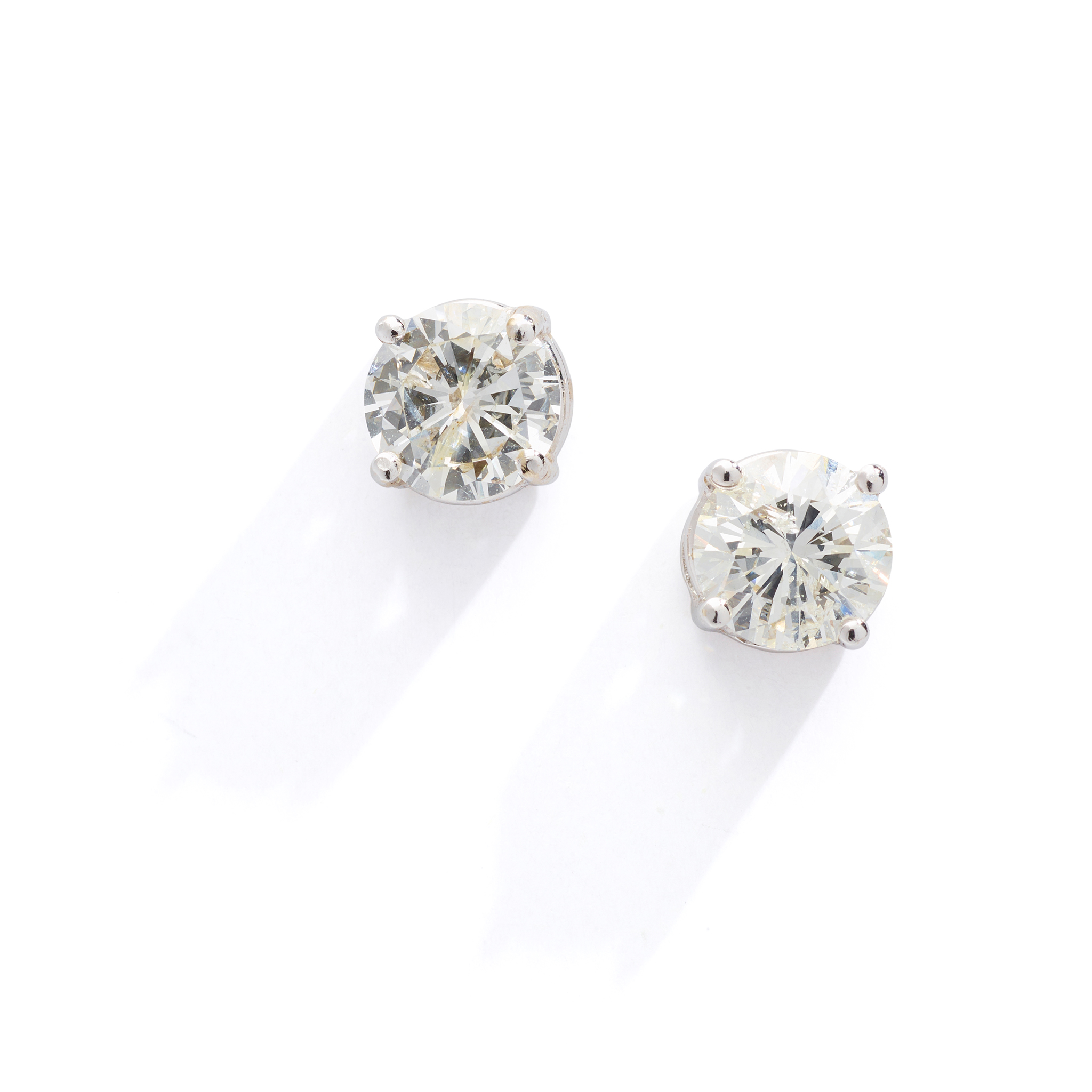 Each claw-set with a round brilliant-cut diamond, weighing approximately 1.05cts each, post fittings, unmarked