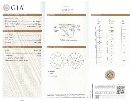 The diamonds are accompanied by two certifications by the Gemological Institute of America; report number 2193873397 dated November 30, 2018 stating the diamond is 1.51cts, SI1 clarity, G colour and report number 5192707014 dated December 03, 2018 stating the diamond is 1.54cts, SI1 clarity, G colour