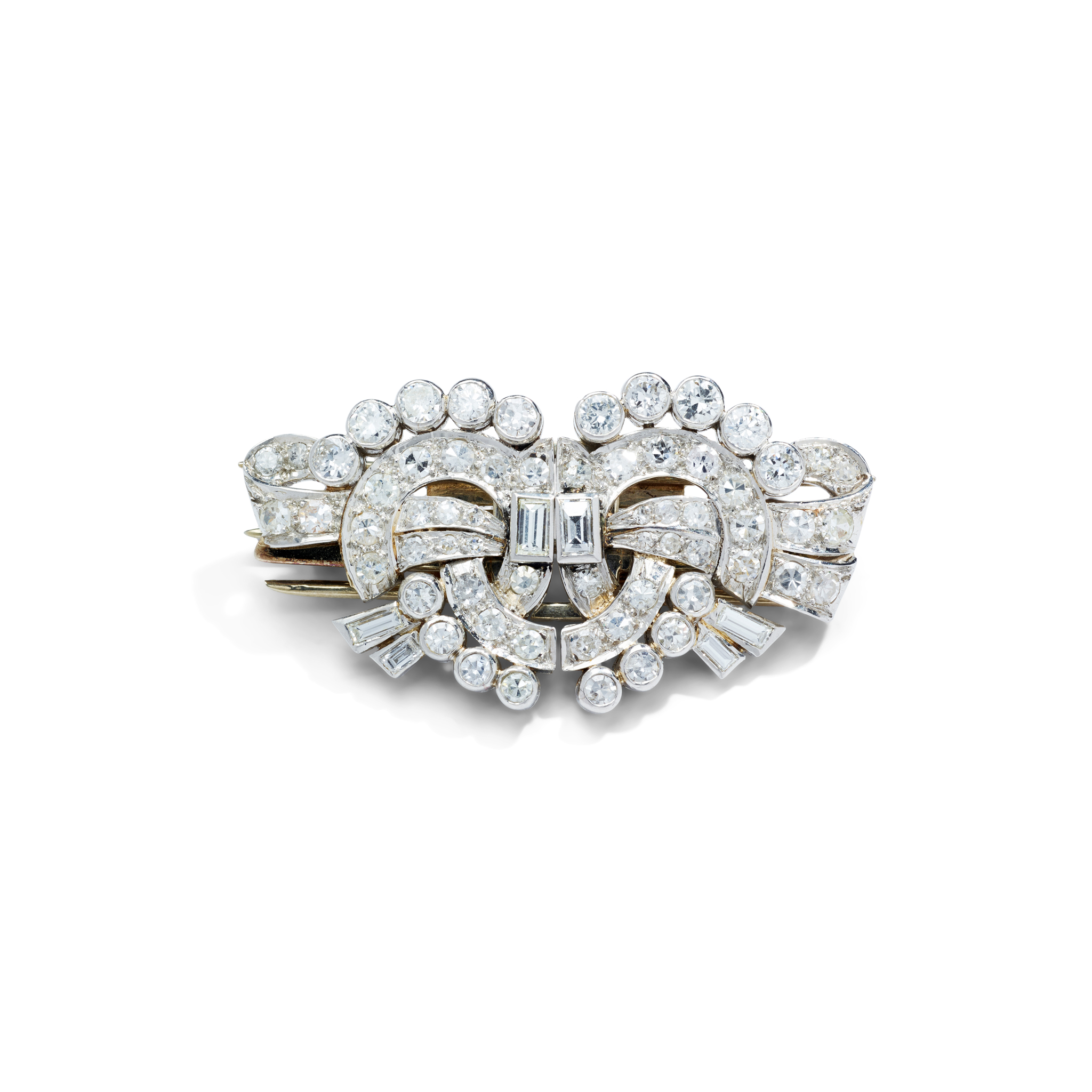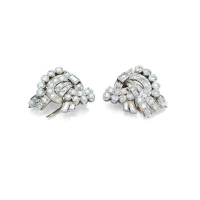 Of pierced scrolling design, set throughout with round, single, and step-cut diamonds, unmarked