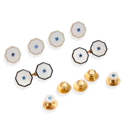 A gentleman’s cased sapphire dress-set