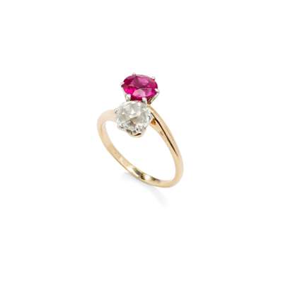 A synthetic ruby and diamond 'Moi-et-Toi' ring