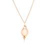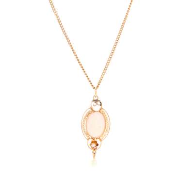 Collet-set with an oval carved coral cameo, in a seed pearl surround, surmounting an old round-cut diamond suspending a pearl, unmarked; the curb-link chain with UK hallmark