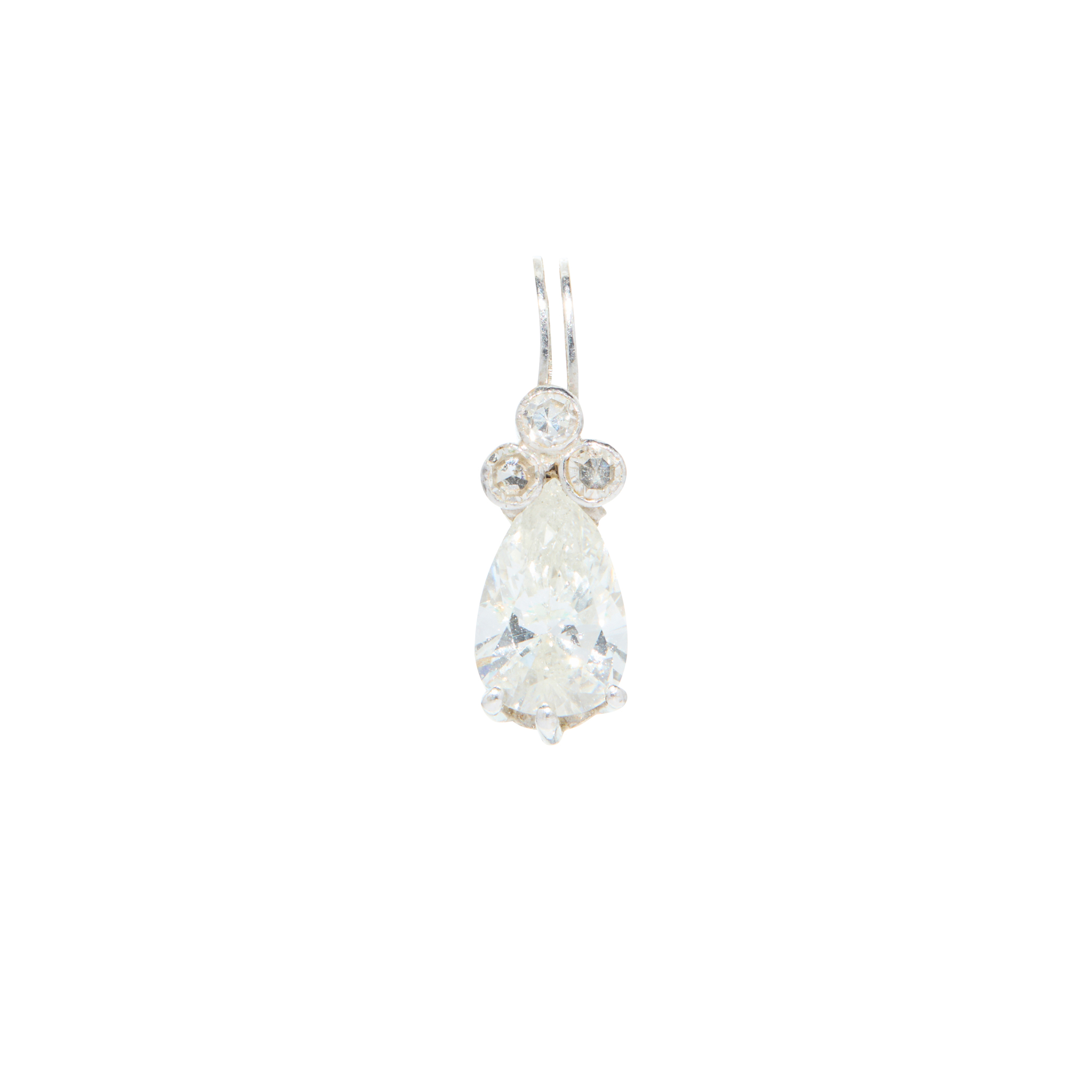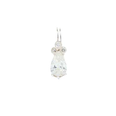 Claw-set with a pear-shaped diamond, surmounted by three round eight-cut diamonds, unmarked